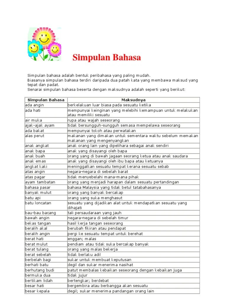 Idiom bahasa inggeris (maksud dalam bm) perbualan bahasa inggeris (maksud dalam bm) perbualan bahasa inggeris (maksud dalam bc) soalan latihan tahun 1 hingga 5. Dalam meniti arus kemodenan yang berteraskan sains dan teknologi maklumat, faktor kesihatan masyarakat pada hari ini berada pada tahap yang membimbangkan pihak berkuasa … Latihan tahun 1 hingga 5. Tahun 1 (b) latih tubi bahasa melayu. Enter the email address you signed up with and we'll email you a reset link. Nov 26, 2021 · (iii) kata majmuk yang mendukung maksud kiasan iaitu simpulan bahasa • kaki ayam, anak emas, berat tangan, duit kopi, makan angin, pilih kasih, buta hati kata majmuk yang telah mantap terdapat sebilangan kecil kata majmuk yang penggunaannnya sudah mantapbdan dianggap satu perkataan yang utuh walaupun bentuk kata tersebut mengandungi …